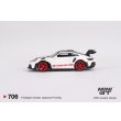MINI GT 1/64 Porsche 911 (992) GT3 RS Weissach Package White w/Pyro Red (LHD)