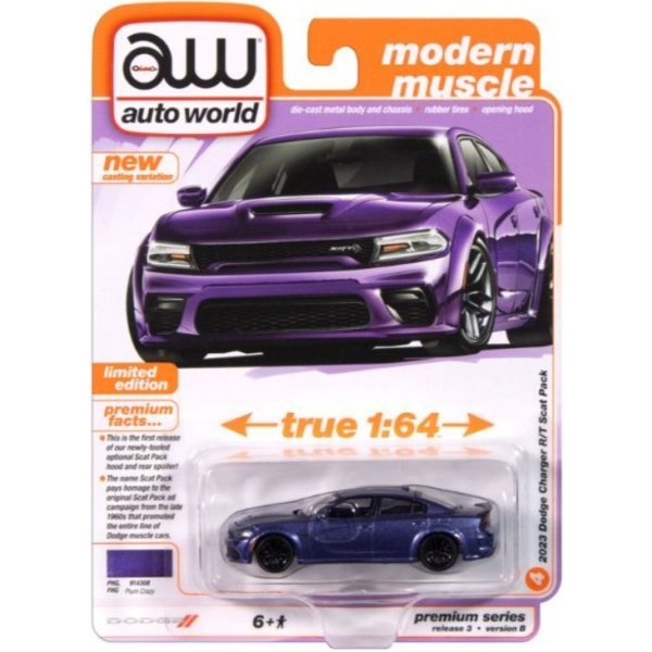 auto world 1/64 2023 Dodge Charger Swinger R/T Scat Pack Plum Crazy