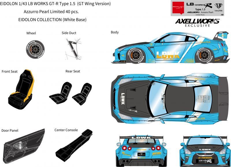 EIDOLON 1/43 LB WORKS GT-R Type 1.5 (GT Wing Version) Azzurro Pearl Limited 40 pcs.