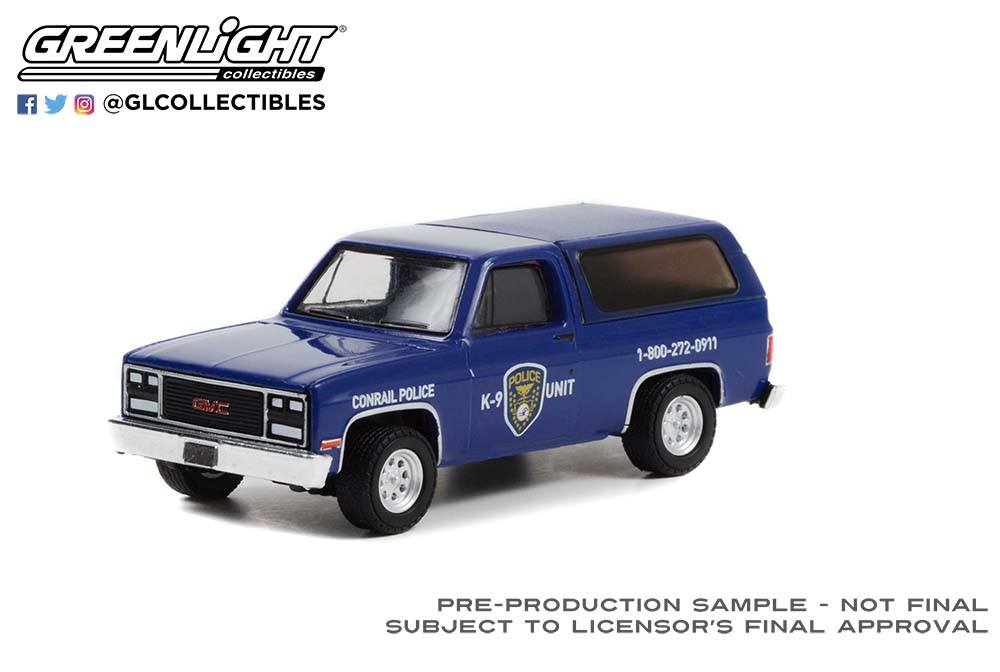 GREEN LiGHT EXCLUSIVE 1/64 1990 GMC Jimmy - Conrail (Consolidated Rail Corporation) Police K-9 Uni