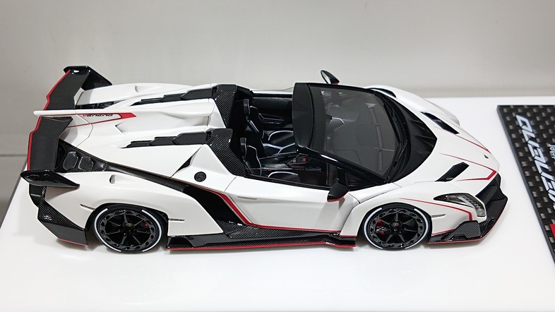EIDOLON 1/43 Lamborghini Veneno Roadster 2015 Matte White / Red Stripe Limited 80 pcs.