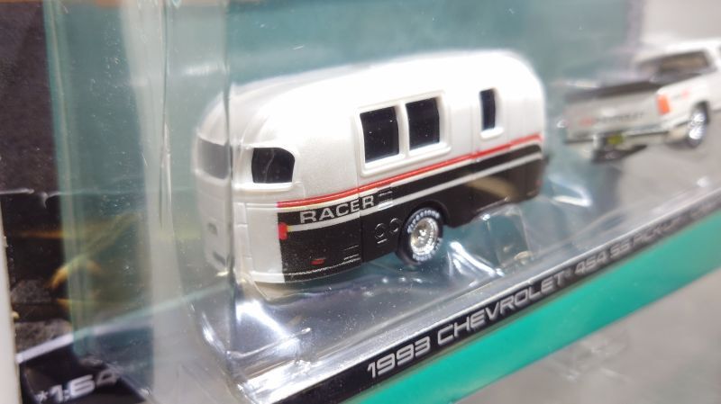Maisto 1/64 1993 Chevrolet 454 SS Pickup & Camper Trailer White/Black
