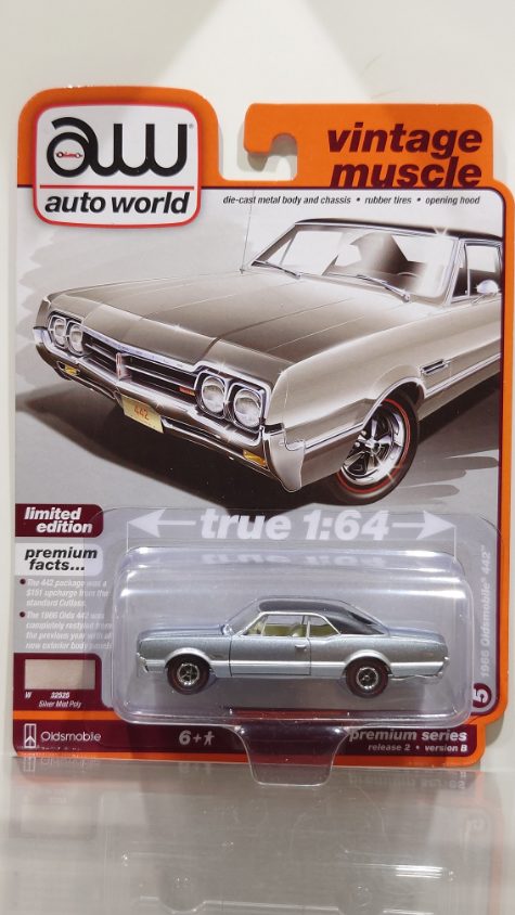 auto world 1/64 1966 Oldsmobile 442 Silver Mist/Black