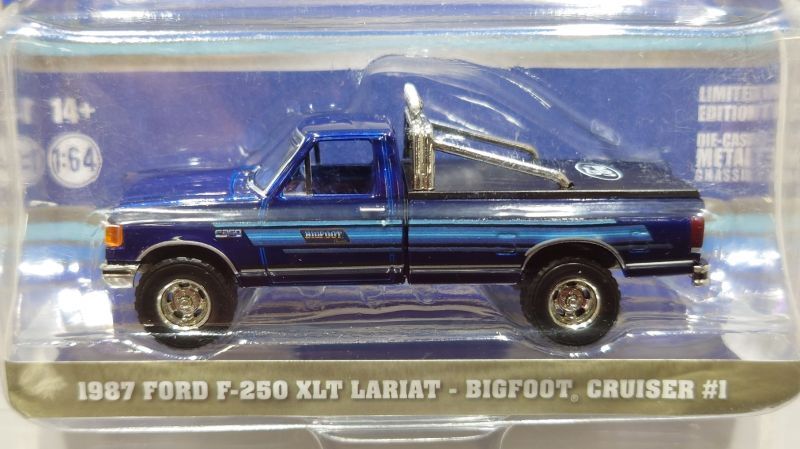 GREEN LiGHT EXCLUSIVE 1/64 1987 Ford F-250 XLT Lariat - Bigfoot Cruiser #1 Ford, Scherer Truck Equipment and Bigfoot 4x4