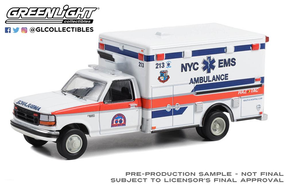 GREEN LiGHT EXCLUSIVE 1/64 First Responders - 1994 Ford F-350 Ambulance - NYC EMS HAZ TAC Ambulance