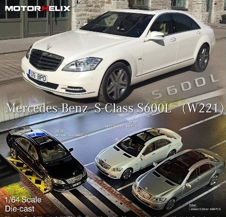 MOTORHELIX 1:64 Mercedes Benz S Class S600L W221 Silver