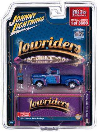 JOHNNY LIGHTNING 1/64 1950 Chevy 3100 Pickup Lowrider Blue with Lowrider Enthusiast Figure [戻る]