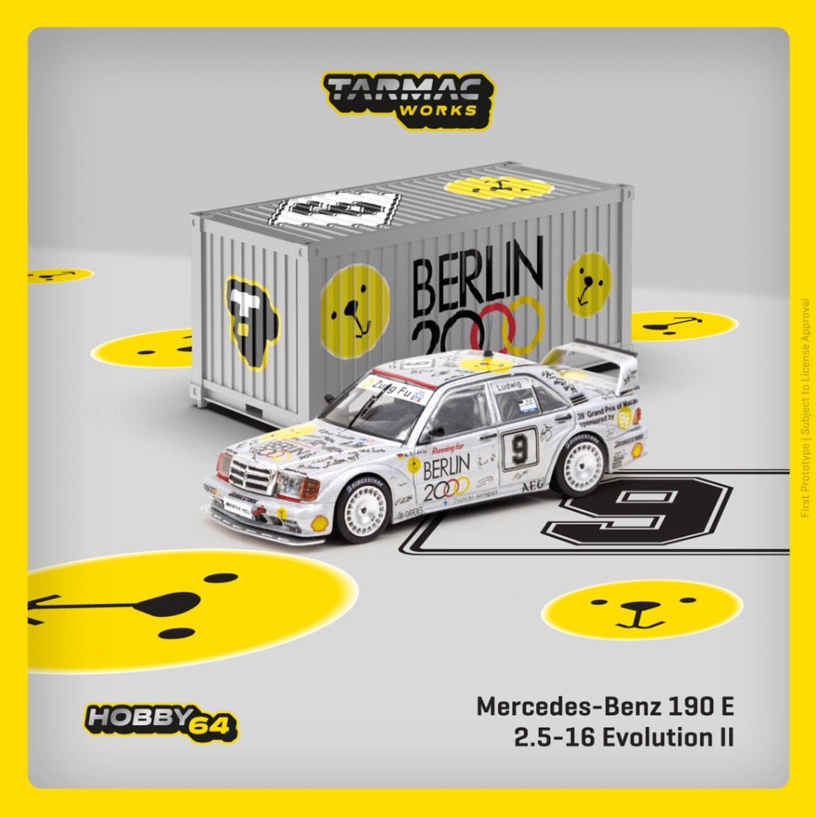 Tarmac Works 1/64 Mercedes-Benz 190 E 2.5-16 Evolution II Macau Guia Race 1992 With Container