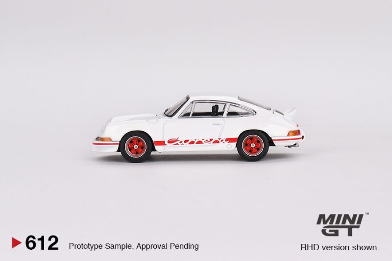 MINI GT 1/64 Porsche 911 Carrera RS 2.7 Grand Prix White/Red Livery (LHD)