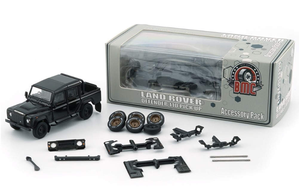 BM CREATIONS 1/64 Land Rover Defender 110 Pickup 2016 Black (RHD) 4x4 Accessory Pack
