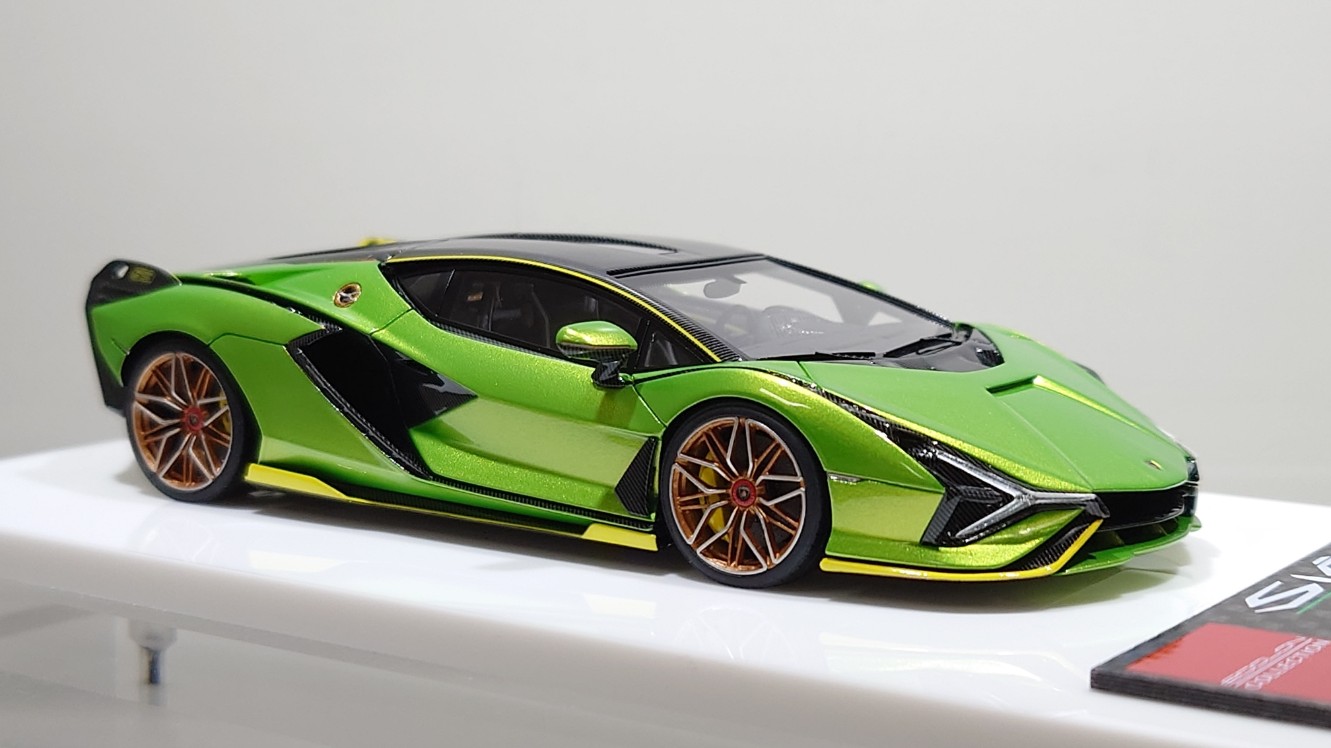 EIDOLON 1/43 Lamborghini Sian FKP 37 2019 with Stripe Giallo Verde Pearl Limited 35 pcs.