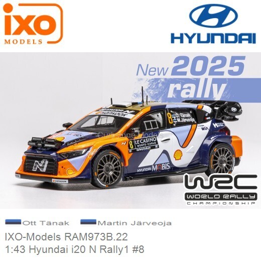 ixo 1/43 Hyundai i20 N Rally 1 2025 Monte Carlo Rally #8 O. Tänak/M. Järveoja