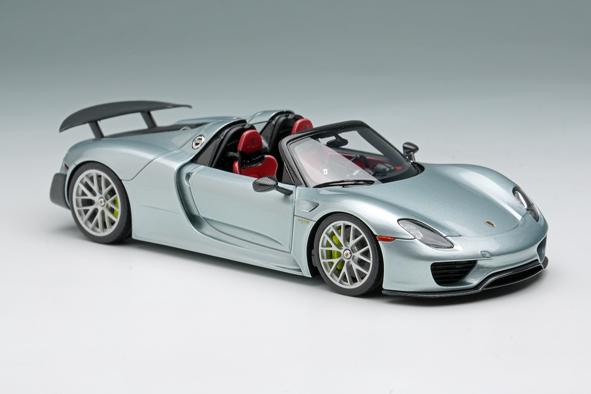 EIDOLON COLLECTION 1/43 Porsche 918 Spyder weissach package 2011 Rear Wing up Rhodium Silver Metallic (US spec) Limited 80 pcs.