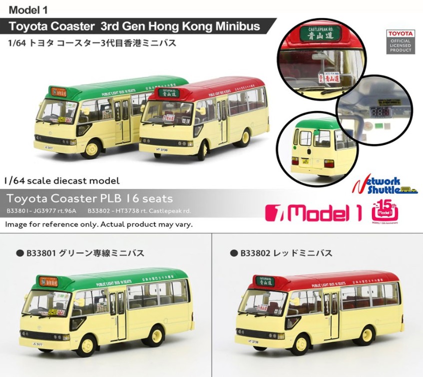 MODEL 1 1/64 Toyota Coaster 3rd Generation Hong Kong Minibus (Red Minibus)