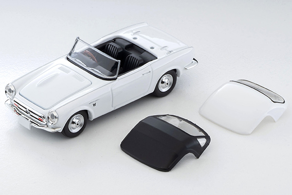 TLVでは2012年にS600/ S800クーペを、そして2022年にオープンボディのS600、S800を製品化しましたが、今回はS800に新仕様が登場。今回はクローズド状態が前提で、黒のソフトトップと白のハードトップが付属。お好みのパーツを付け替えることができます。これまでのSシリーズはもちろん、TLV-NEOシリーズで展開中のNSXやS2000とあわせて、新旧ホンダスポーツの歴史をお楽しみ下さい。