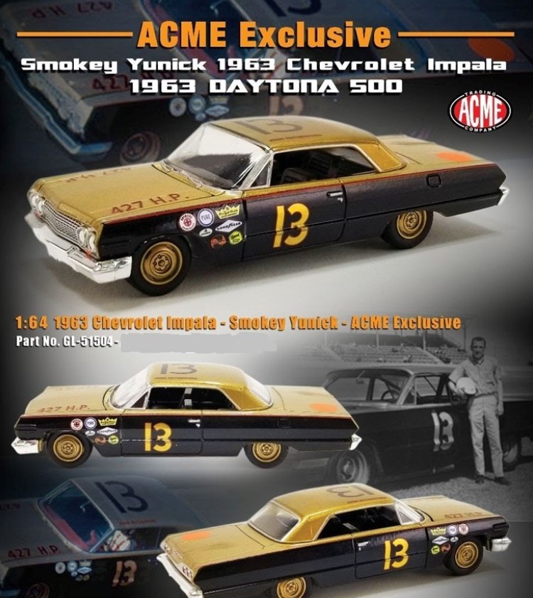 ACME 1/64 1963 Chevrolet Impala Smokey Yunick 1963 Daytona 500 #13 J. Rutherford
