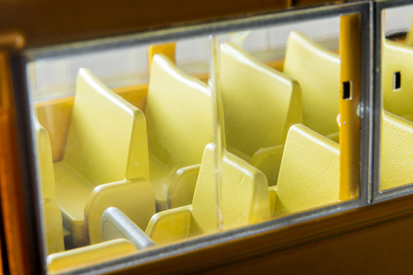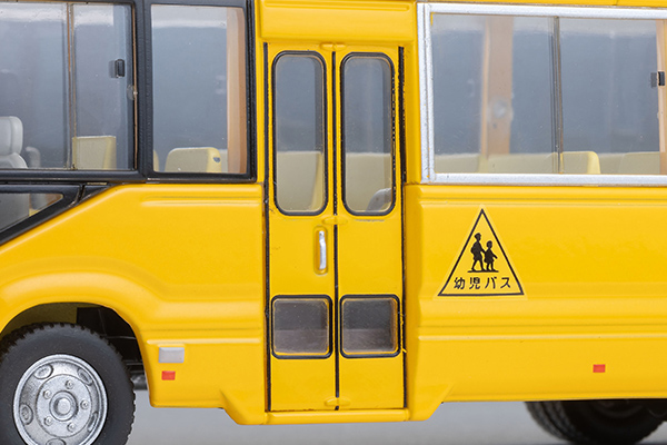 今回は幼児専用車のカタログ仕様をモチーフに、黄色のボディカラーをチョイスしました。鮮やかなカラーリングはもちろん、幼児専用車ならではの後面非常口や低床化されたステップなどのディテールも見逃せないポイントです。かわいらしい色合いのローバックシートにもご注目ください。お持ちのTLV-NEO各車種と並べて、現代の街角の様子を再現してみましょう。