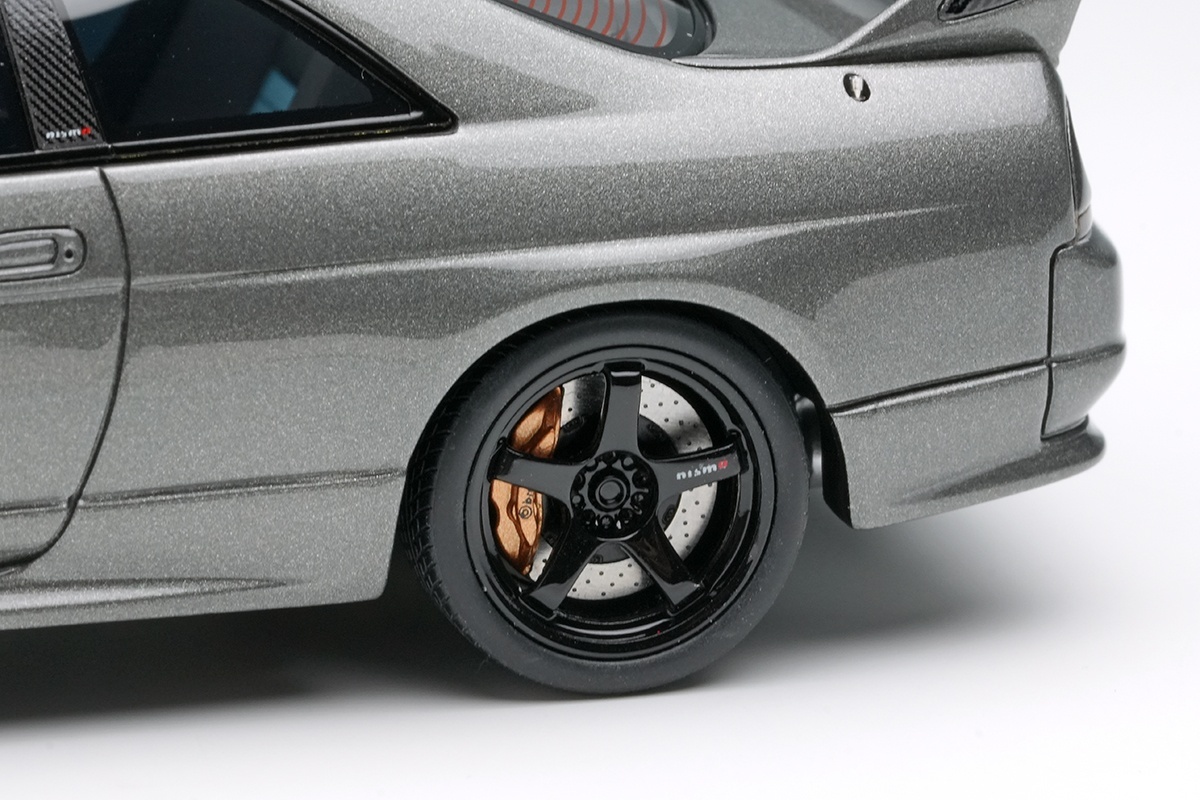 スカイラインGT-R(BCNR33)をベースに、フロントバンパーとリヤウィングをニスモ製のパーツに変更。カーボン製の2枚翼リアウィングは角度調整機能を持ち合わせたカーボン製です。