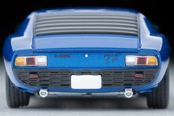 TLVではミウラの主な世代、P400およびS、SVを製品化していますが、今回はミウラ SVに新色が登場。鮮やかなブルーメタリックのボディカラーをチョイスしました。ミウラ SVの特徴であるワイドなリアフェンダーや、従来型とは異なるヘッドライト周辺、テールライト等を再現しています。元祖スーパーカー、ミウラの最終進化型をTLVでもお楽しみください。