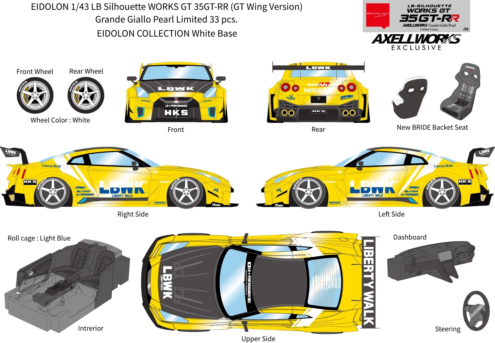 EIDOLON 1/43 LB Silhouette WORKS GT 35GT-RR (GT Wing Version) Grande Giallo Pearl Limited 33 pcs. [LB014AX6]
