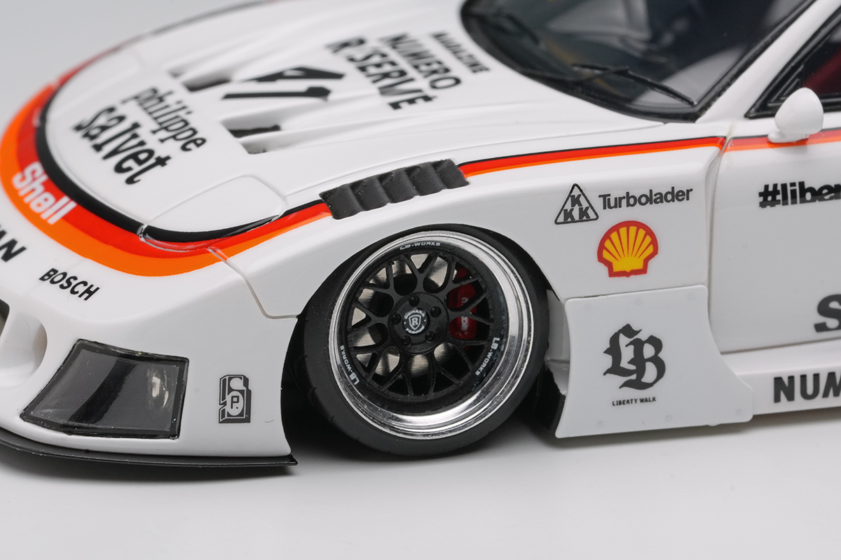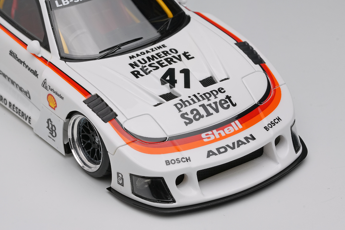 今回は日本の街道レーサー・スタイルを世界に知らしめた、愛知のリバティーウォークが製作した、往年のシルエットフォーミュラ風ボディキットを装着した車両をモデル化いたしました。純然たるレースカーではなく、ストリートを爆走するアウトローな雰囲気をお楽しみいただけます。