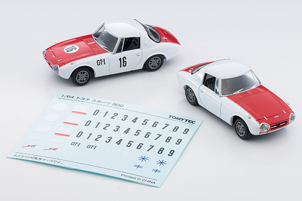 TLVでは前期型、後期型と製品化してきましたが、今回はレース仕様をイメージしたツートーンの'65年式を展開。ゼッケンなどを再現できる水転写式デカールをセットしますので、現役当時、もしくは後年のヒストリックカーレースなど様々な設定でお好みの仕様をお楽しみください。