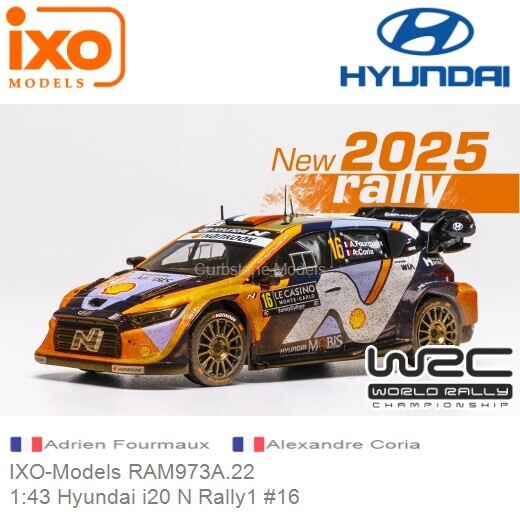 ixo 1/43 Hyundai i20 N Rally 1 2025 Monte Carlo Rally #16 A. Fourmaux/A. Corea [RAM973A]