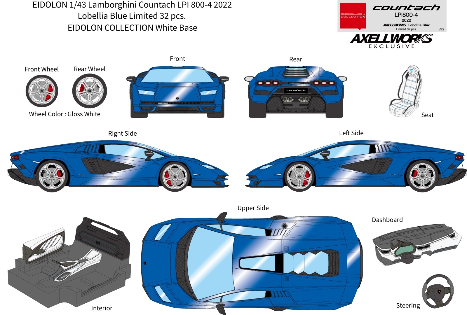 EIDOLON 1/43 Lamborghini Countach LPI 800-4 2022 Lobellia Blue Limited 32 pcs.