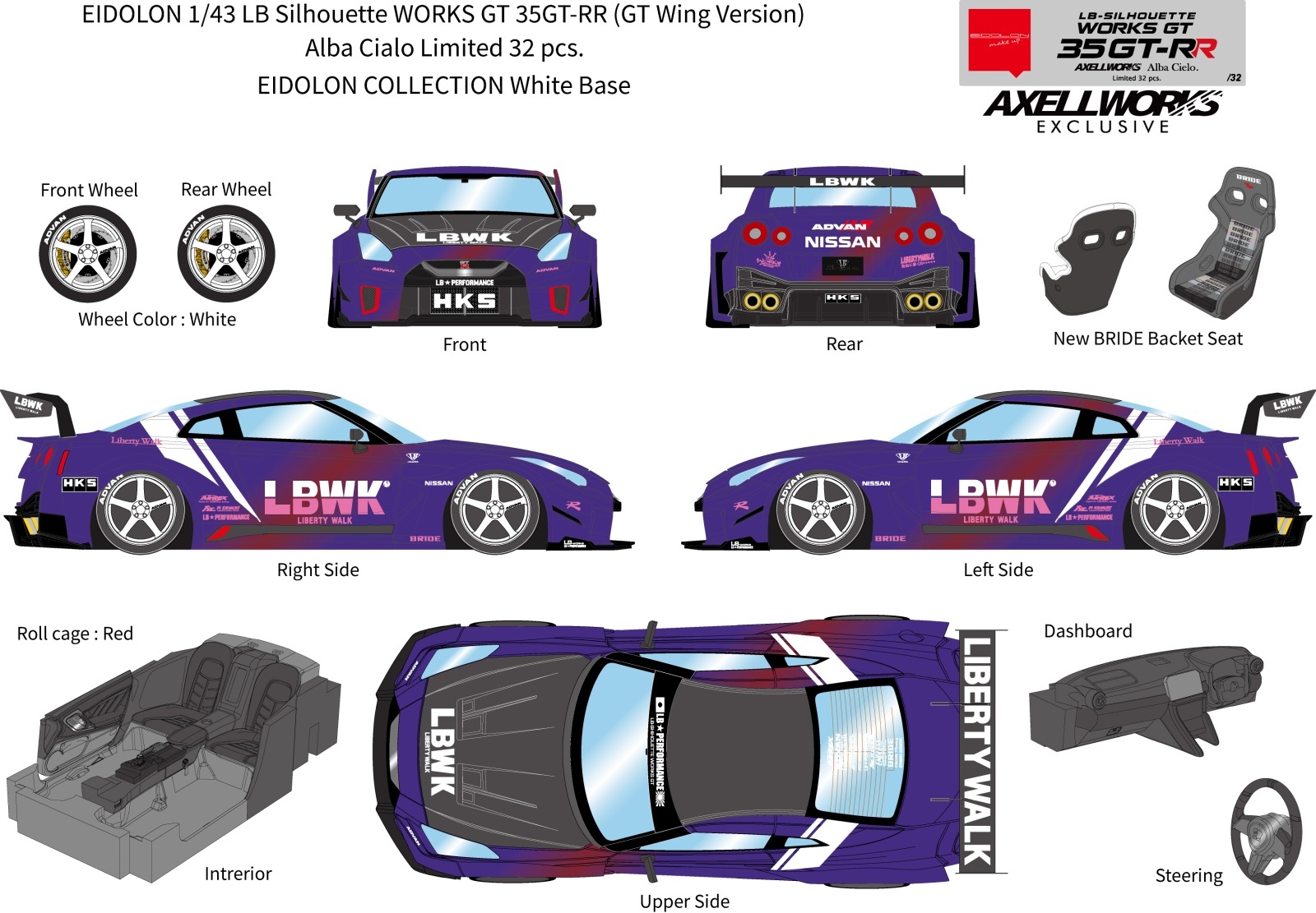 EIDOLON 1/43 LB Silhouette WORKS GT 35GT-RR (GT Wing Version) Alba Cielo Limited 32 pcs.