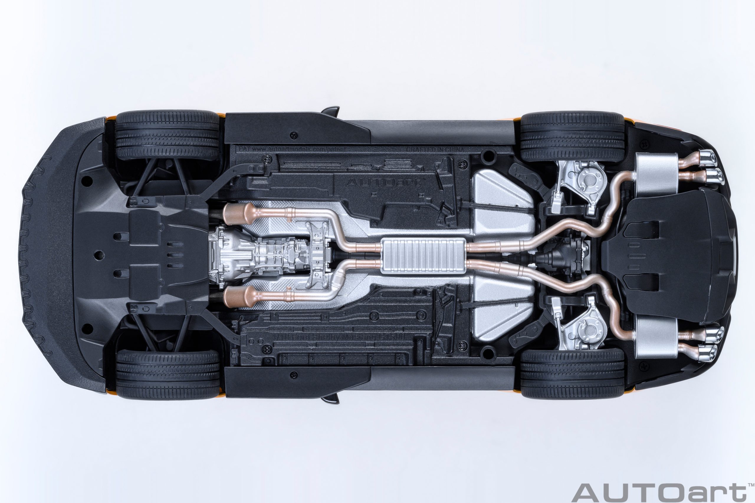 オートアートでは、デジタルデータを駆使し、大型フロントグリルや、ボンピンが装着されるフードベント付きボンネット、大型リアウイングなど、アグレッシブなデザインをリアルに再現。インテリアの質感やレカロスポーツシート、ブレンボ製ブレーキやミシュランタイヤなど細部まで拘ってモデル化しています。