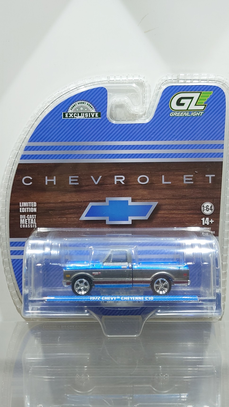 GREEN LiGHT EXCLUSIVE 1/64 1972 Chevy Cheyenne C10 Short Bed - Electric Blue and Gunmetal Gray