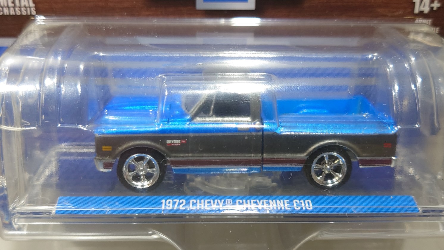 GREEN LiGHT EXCLUSIVE 1/64 1972 Chevy Cheyenne C10 Short Bed - Electric Blue and Gunmetal Gray [30567]