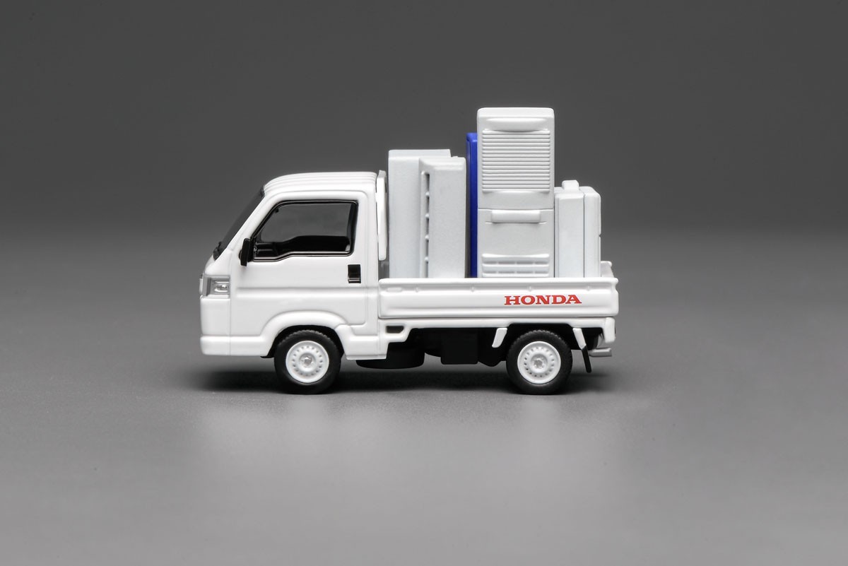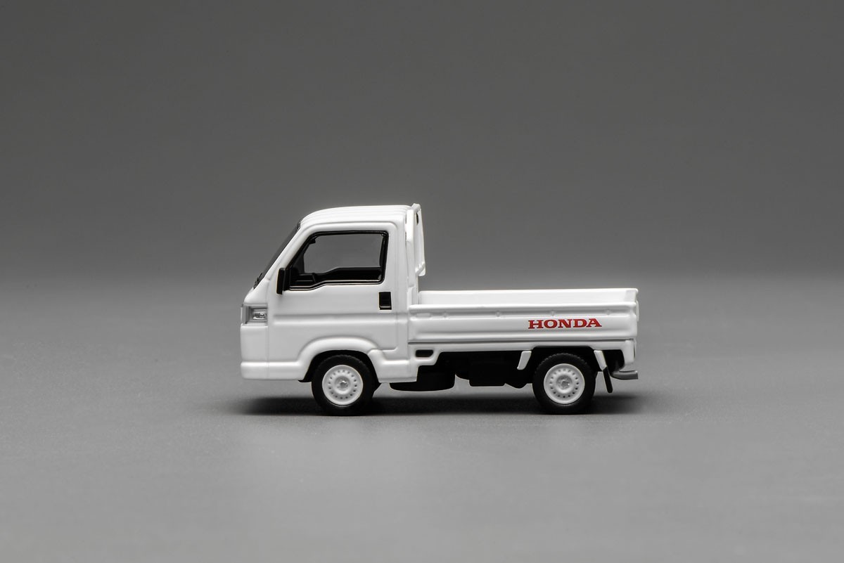 1/64スケールで再現されたホンダ Acty トラック。実車の持つ実用性と親しみやすいデザインを凝縮したミニチュアモデルです。