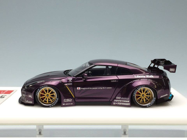 今回のコラボモデルは「Liberty Walk」によってワークススタイルのオーバーフェンダーを装着された"LB★WORKS R35 GT-R"を忠実に再現したモデルになります。 名古屋に本拠地を置くリバティーウォークはケンメリやハコスカなどに代表される"ワークススタイル"を現代のスポーツカー・スーパーカーに取り入れ、日本のみならず世界中で注目されているカスタマイズブランドです! 大きく張り出したオーバーフェンダーに20インチのディープリムのホイールを装着し、車高も極限まで下げる事でGT-Rの持つ迫力を更に引き立たせています。 今回のモデルではオプションパーツの"GTリアウィング"を再現!!スワンネックのワイドなGTウィングを装着した姿は圧巻です!! ホイールは"Liberty Walkオリジナルの10スポークホイール"を採用!! 圧倒的な迫力のGT-Rをお楽しみください!!