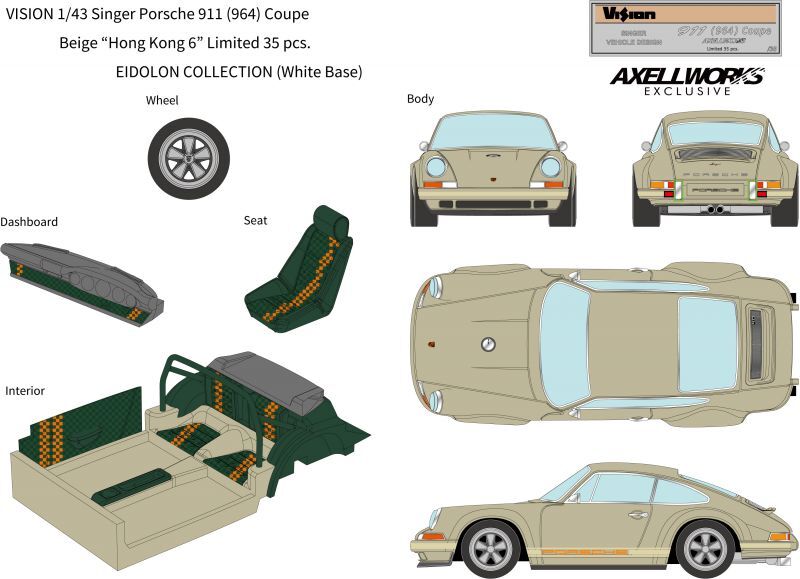 VISION 1/43 Singer Porsche 911(964) Coupe Beige "Hong Kong 6" Limited 35 pcs.
