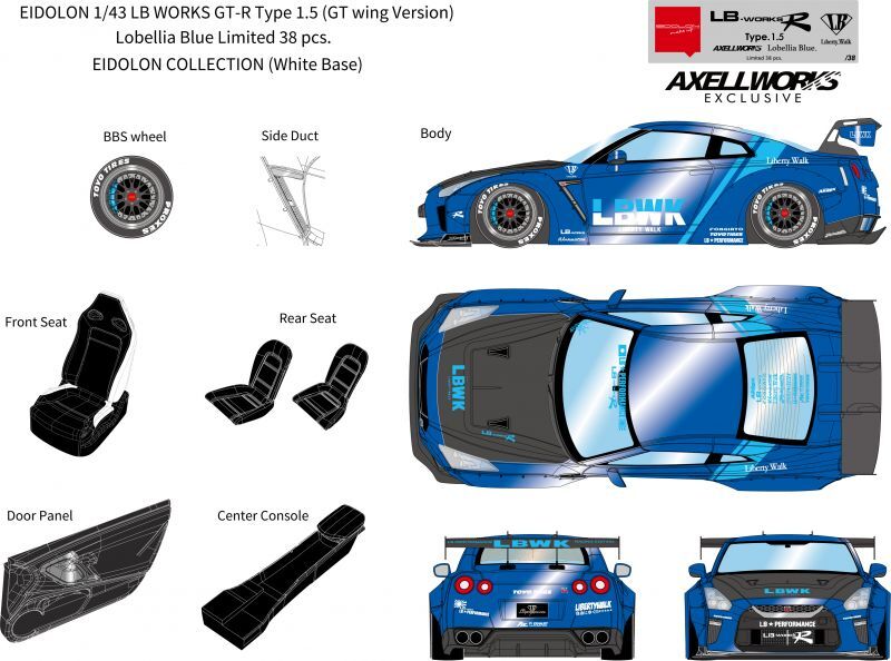 EIDOLON 1/43 LB WORKS GT-R Type 1.5 (GT Wing Version) Lobellia Blue Limited 38 pcs.