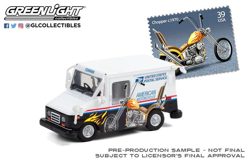 GREEN LiGHT EXCLUSIVE 1/64 USPS Long-Life Postal Delivery Vehicle (LLV) --American Motorcycles Collectible Stamps LLV