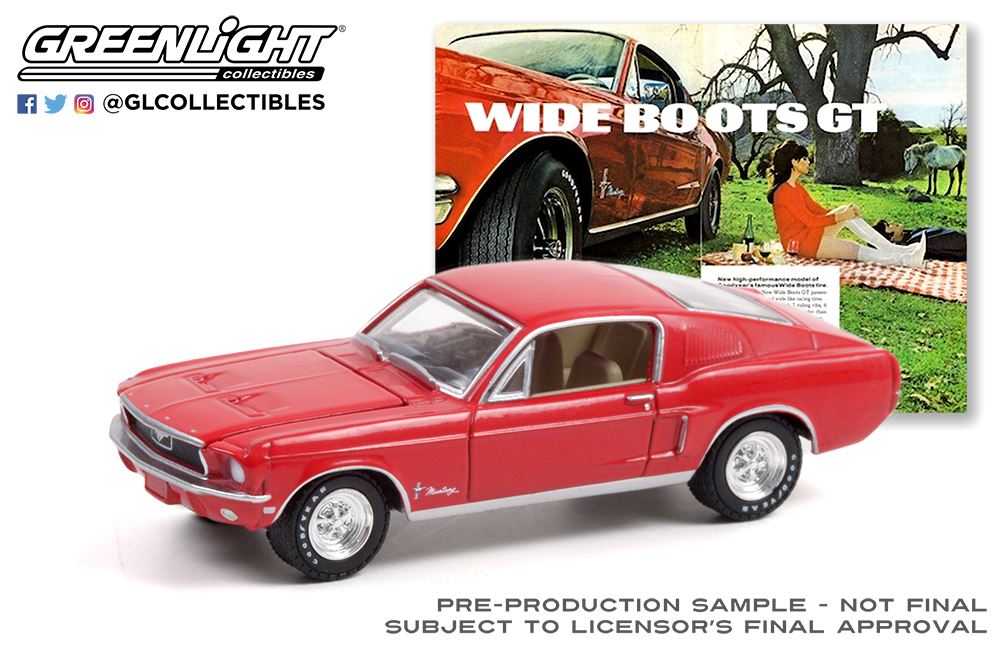 GREEN LiGHT EXCLUSIVE 1/64 Goodyear Vintage Ad Cars - 1968 Ford Mustang - Wide Boots "Wide Boots GT" [30247]