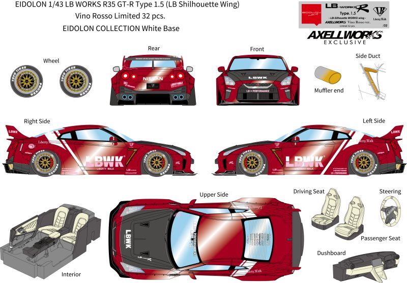 EIDOLON 1/43 LB WORKS R35 GT-R Type 1.5 (LB Shilhouette Wing) Vino Rosso Limited 32 pcs.