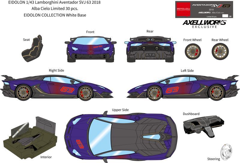 EIDOLON 1/43 Lamborghini Aventador SVJ 63 2018 Alba Cielo Limited 30 pcs.