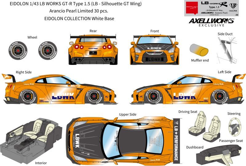 EIDOLON 1/43 LB WORKS GT-R Type 1.5 (LB-Silhouette GT Wing) Arancio Pearl Limited 30 pcs.