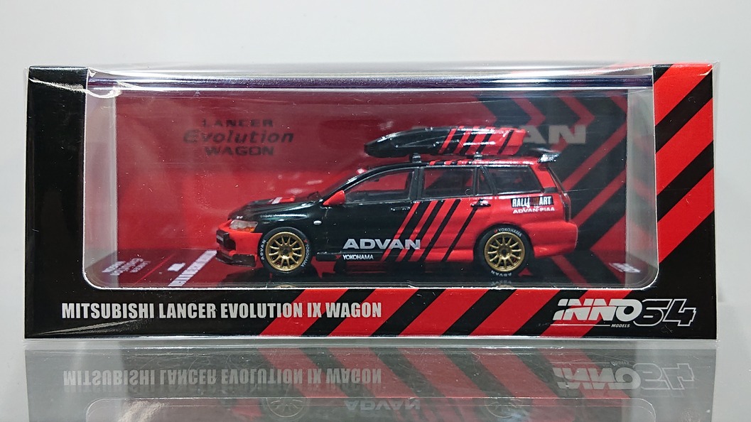 INNO Models 1/64 Mitsubishi Lancer Evolution IX Wagon "ADVAN" Livery With RaceCar Interior with Roof Box