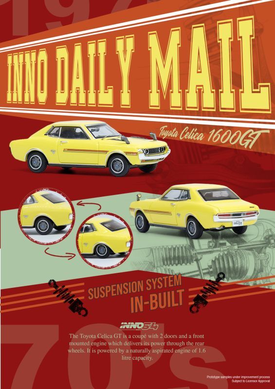 INNO Models 1/64 Toyota Celica 1600GT (TA22) Yellow [IN64-1600GT-YL] INNO Models 1/64 Toyota Celica 1600GT (TA22) Yellow [IN64-1600GT-YL] 販売価格: 2,900円(税別) (税込: 3,190円) Tweet 数量: 1 返品特約に関する重要事項 お問い合わせ INNO Models 1/64 Toyota Celica 1600GT (TA22) Yellow