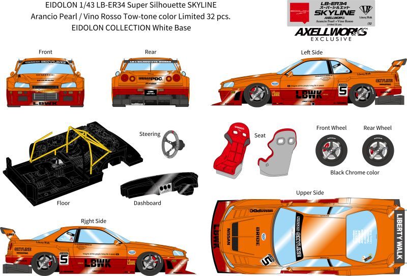 EIDOLON 1/43 LB-ER34 Super Silhouette SKYLINE Arancio Pearl / Vino Rosso Tow-tone color Limited 32 pcs.
