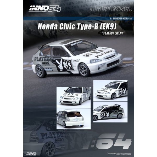 INNO Models 1/64 Honda Civic TYPE-R (EK9) "PLAYBOY" [IN64-EK9-PB] INNO Models 1/64 Honda Civic TYPE-R (EK9) "PLAYBOY" [IN64-EK9-PB] 販売価格: 3,600円(税別) (税込: 3,960円) Tweet 数量: 1 返品特約に関する重要事項 お問い合わせ INNO Models 1/64 Honda Civic TYPE-R (EK9) "PLAYBOY"