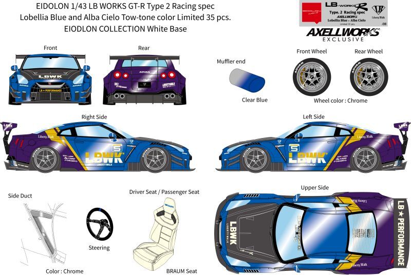 EIDOLON 1/43 LB WORKS GT-R Type 2 Racing spec Lobellia Blue and Alba Cielo Tow-tone color Limited 35 pcs.