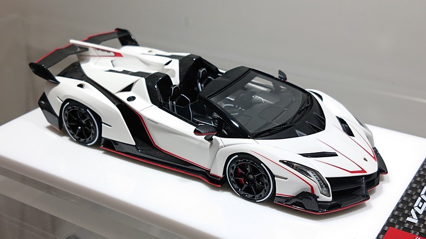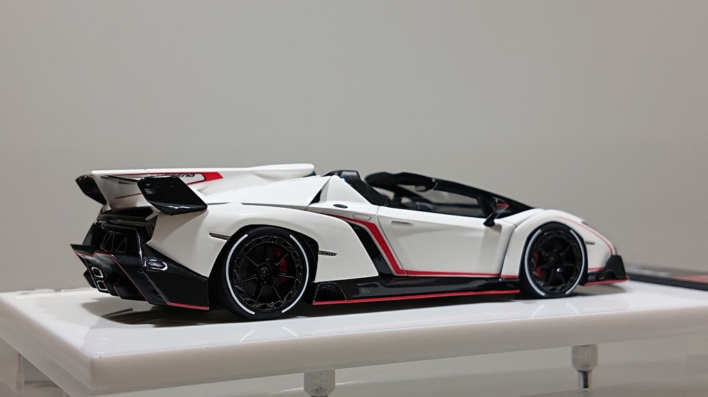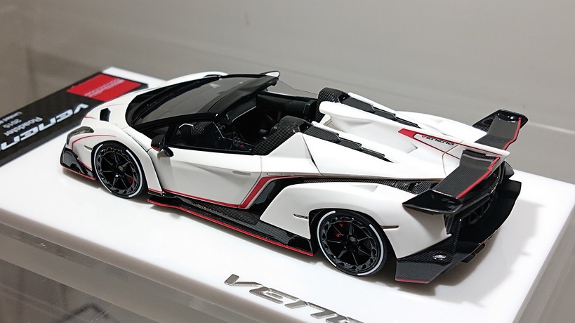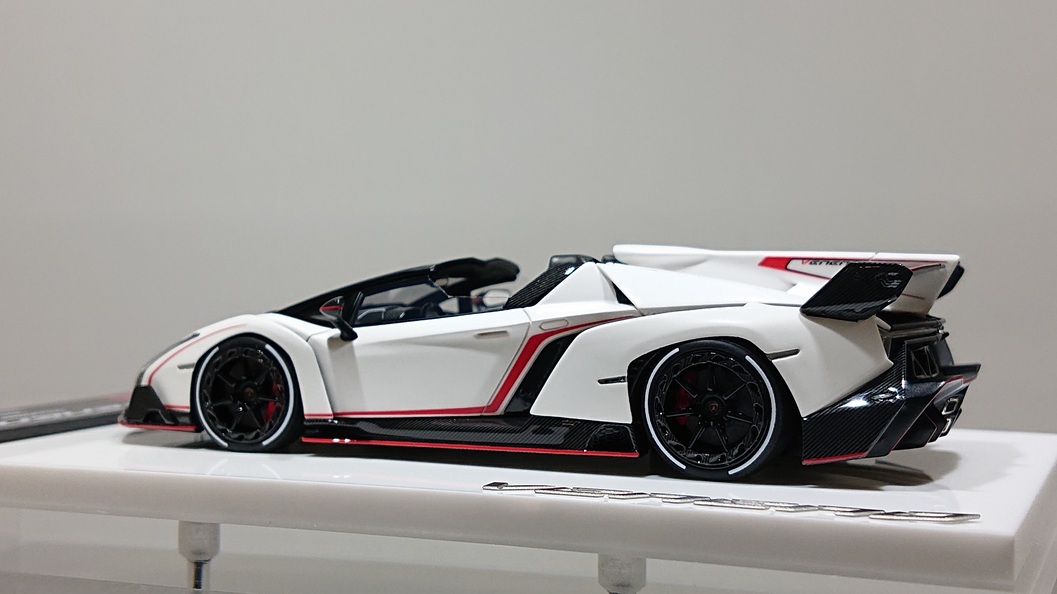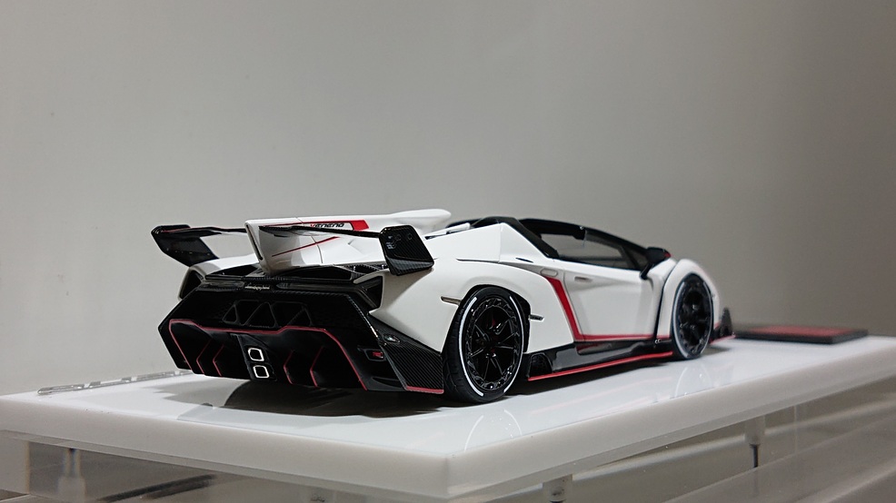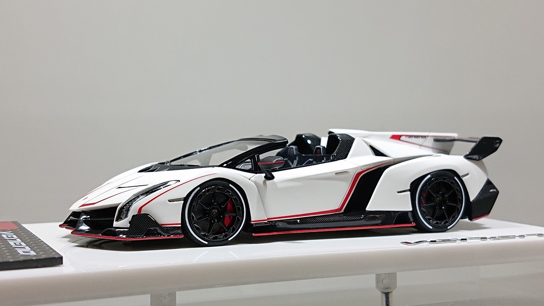 EIDOLON 1/43 Lamborghini Veneno Roadster 2015 Matte White / Red Stripe Limited 80 pcs. [EM451B]