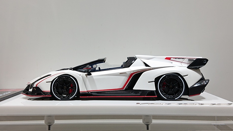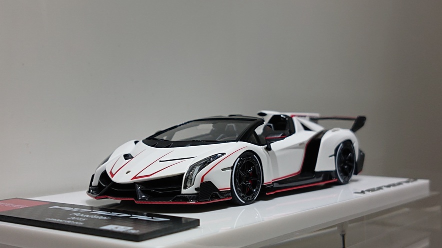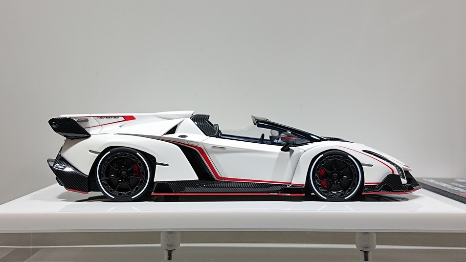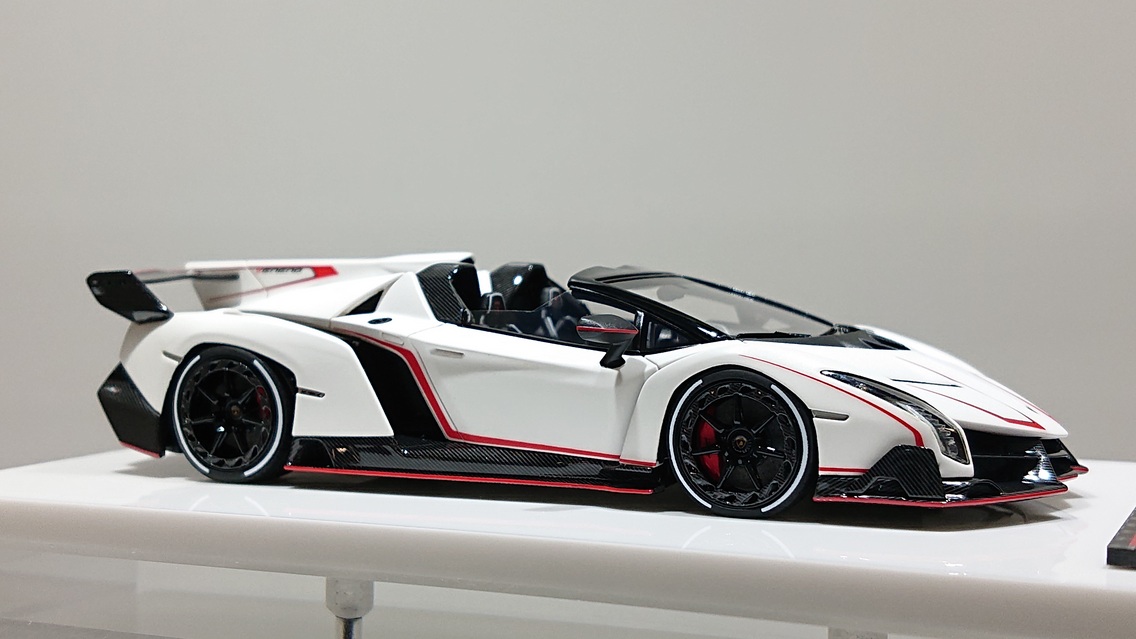 EIDOLON 1/43 Lamborghini Veneno Roadster 2015 Matte White / Red Stripe Limited 80 pcs.