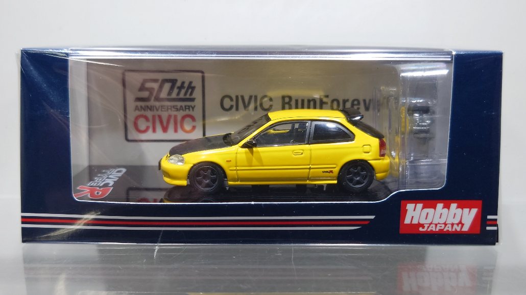 Hobby JAPAN 1/64 Honda CIVIC Type R (EK9) /Custom Version with Engine Display Model Sunlight Yellow [HJ642016EY]