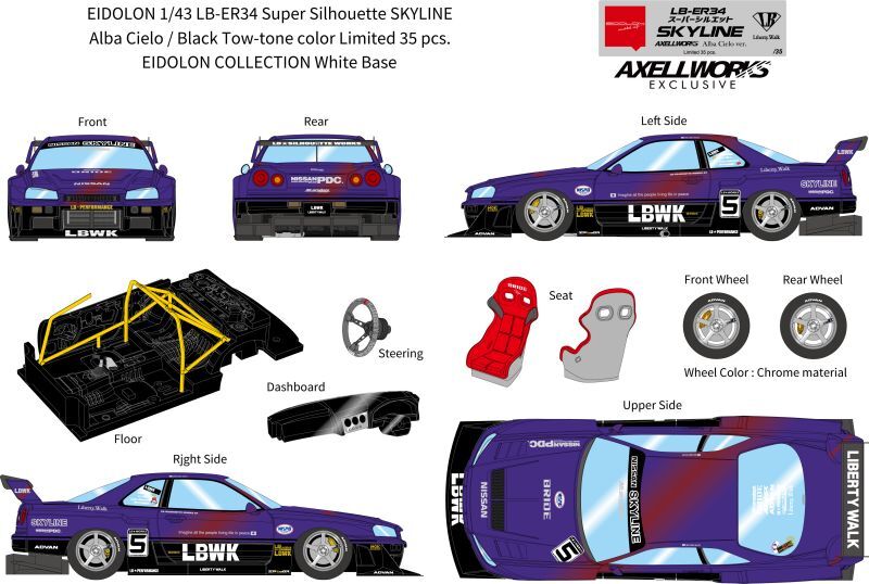 EIDOLON 1/43 LB-ER34 Super Silhouette SKYLINE Alba Cielo / Black Tow-tone color Limited 35 pcs.